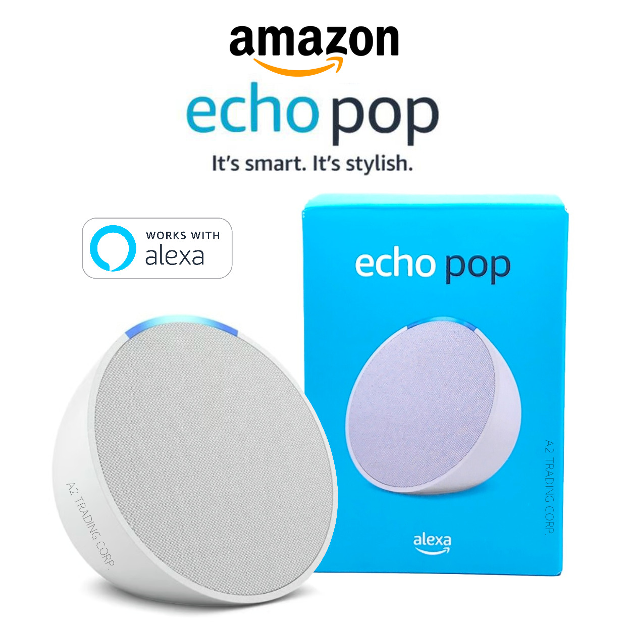 Amazon Echo Pop (1st Generation) Smart Speaker with Alexa – Glacier White