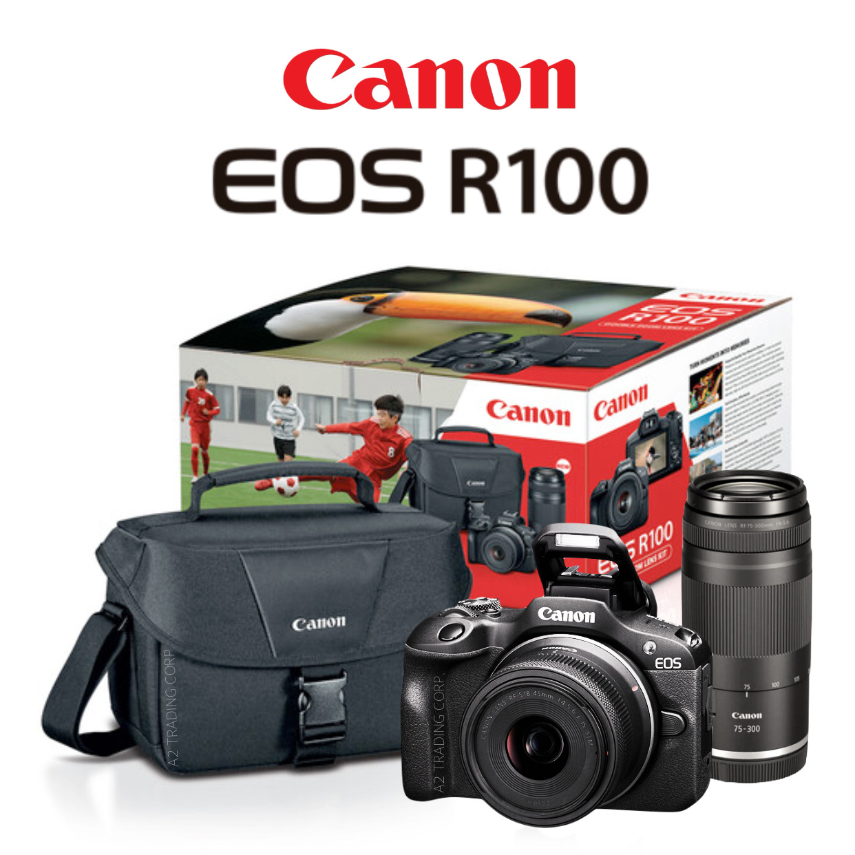 Canon EOS R100 Mirrorless Camera with 18-45mm and 75-300mm Lenses + Shoulder Bag Bundle