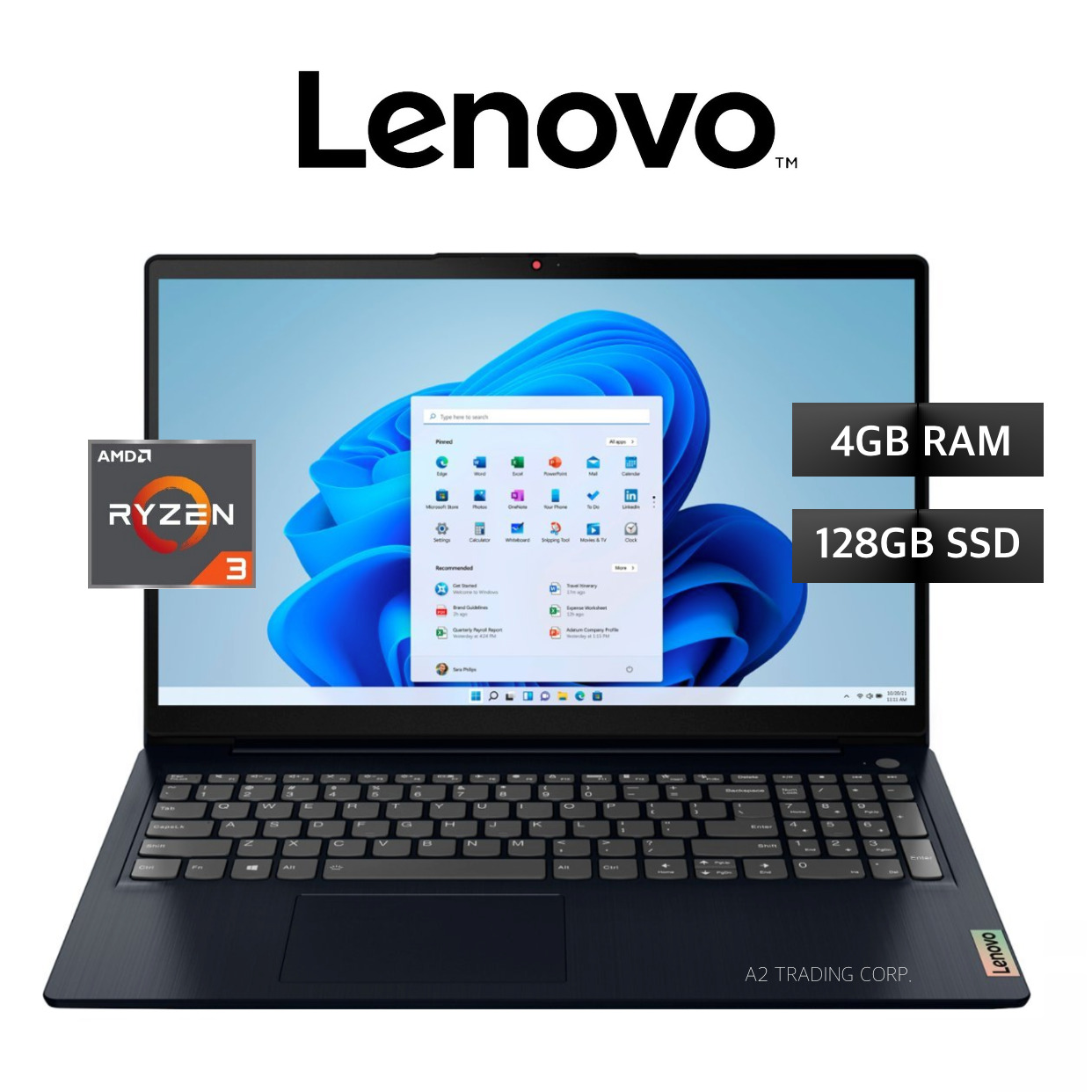 Lenovo IdeaPad 1 15.6” FHD Laptop, AMD Ryzen 3 7320U, 4GB RAM, 128GB SSD, Windows 11 Home in S Mode – Abyss Blue