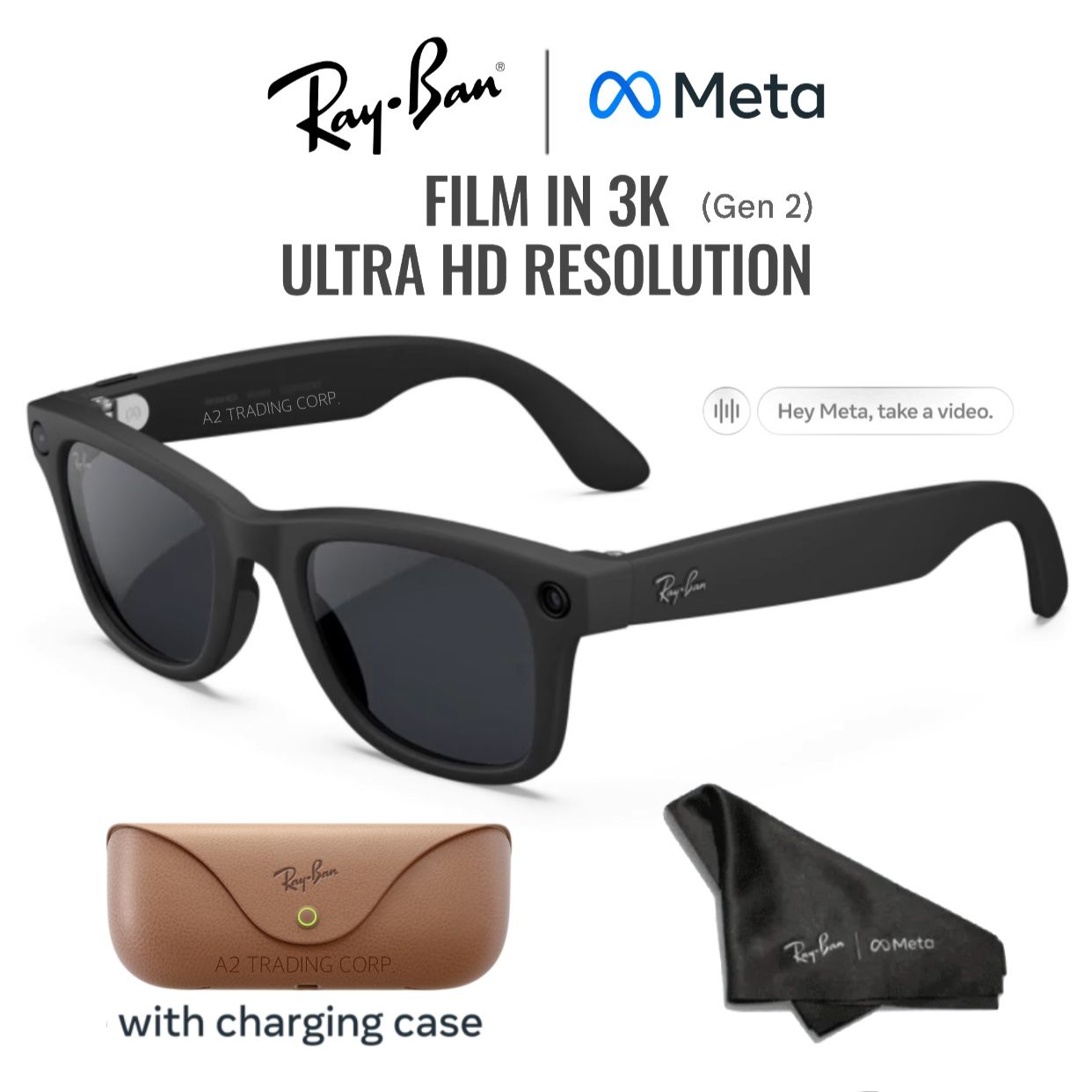 Ray-Ban Meta Wayfarer (Gen 2) glasses with Meta AI, Audio, Photo, Video Compatibility – Polarized Gradient Graphite lenses – Matte Black